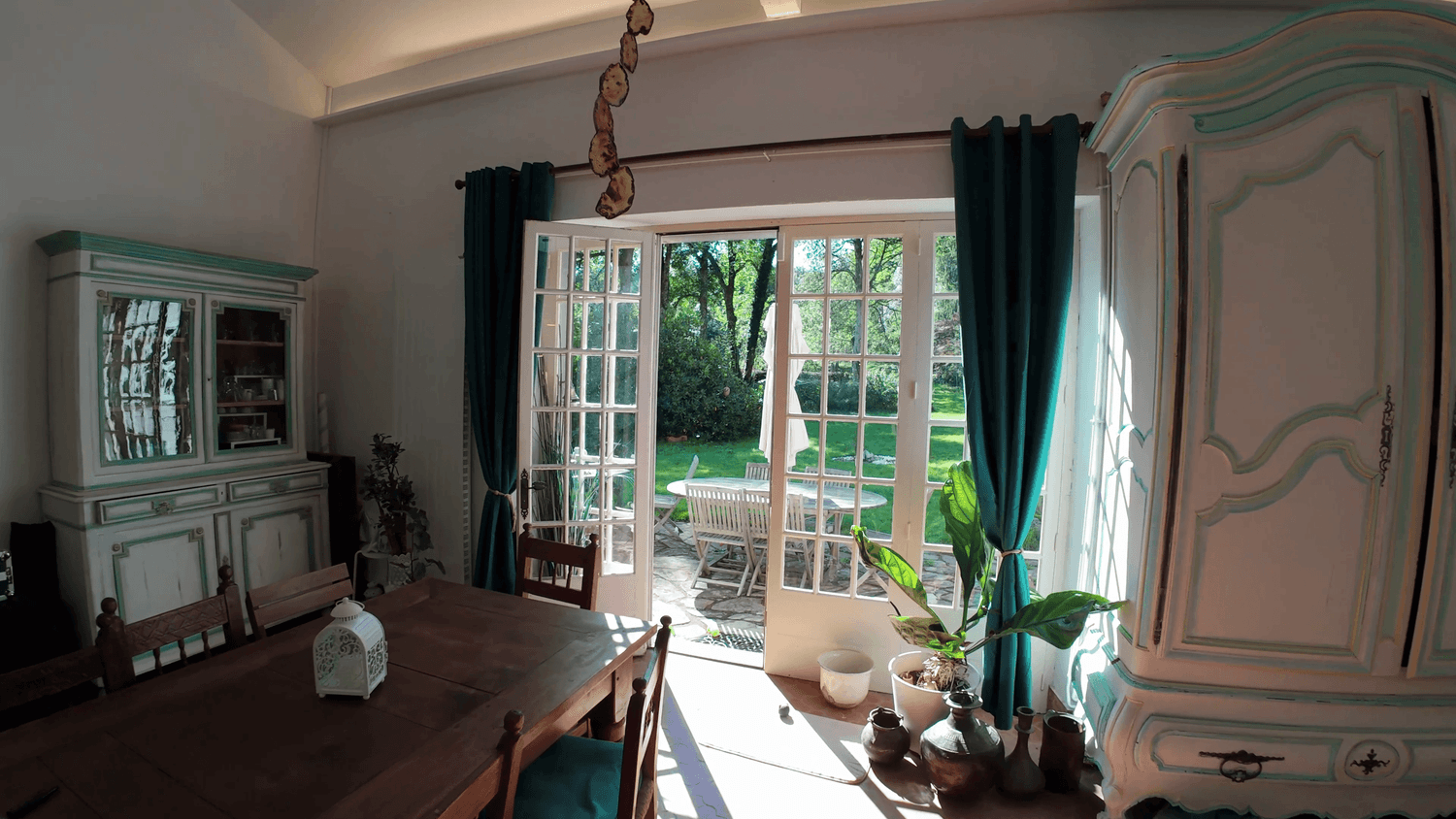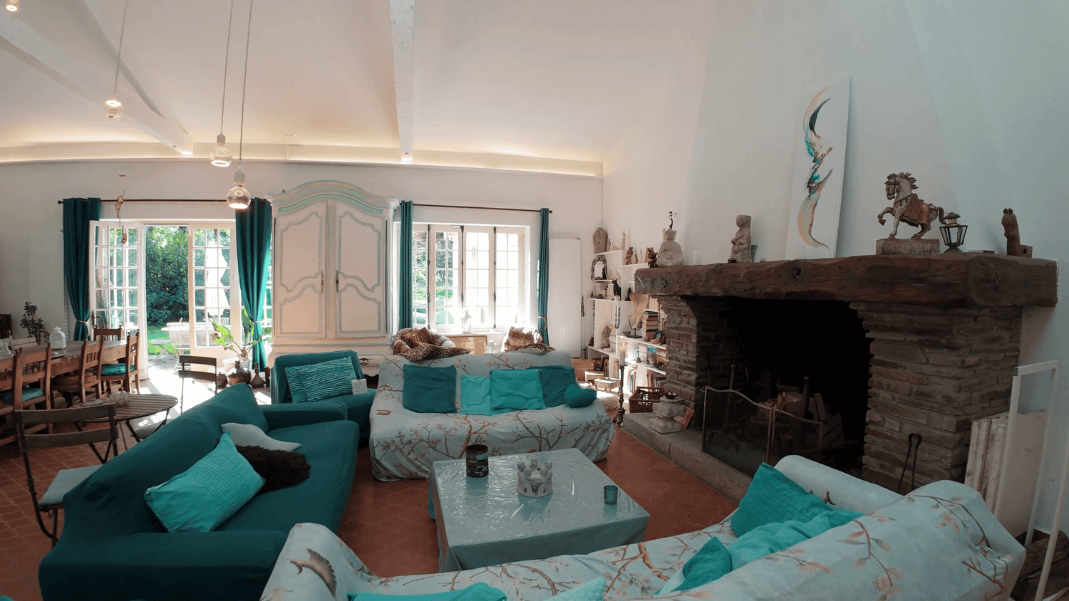 90m2 d'harmonie avec la grande cheminée, la vieille table faite du bois du domaine (12 à 20 personnes), la bibliothèque psycho-spirituelle, les BD héroique-fantaisie, les objets personnels inspirés et symboliques… Un voyage qui unit le ciel et la terre.
