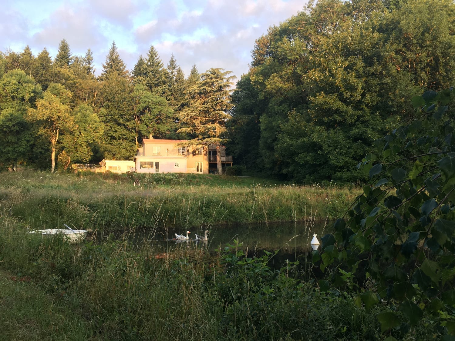 10ha de prairies, de bois, de ruisseaux, une source… L'étang mystérieux, non baignable par obligation légale. La barque, les paddles, les arbres…
